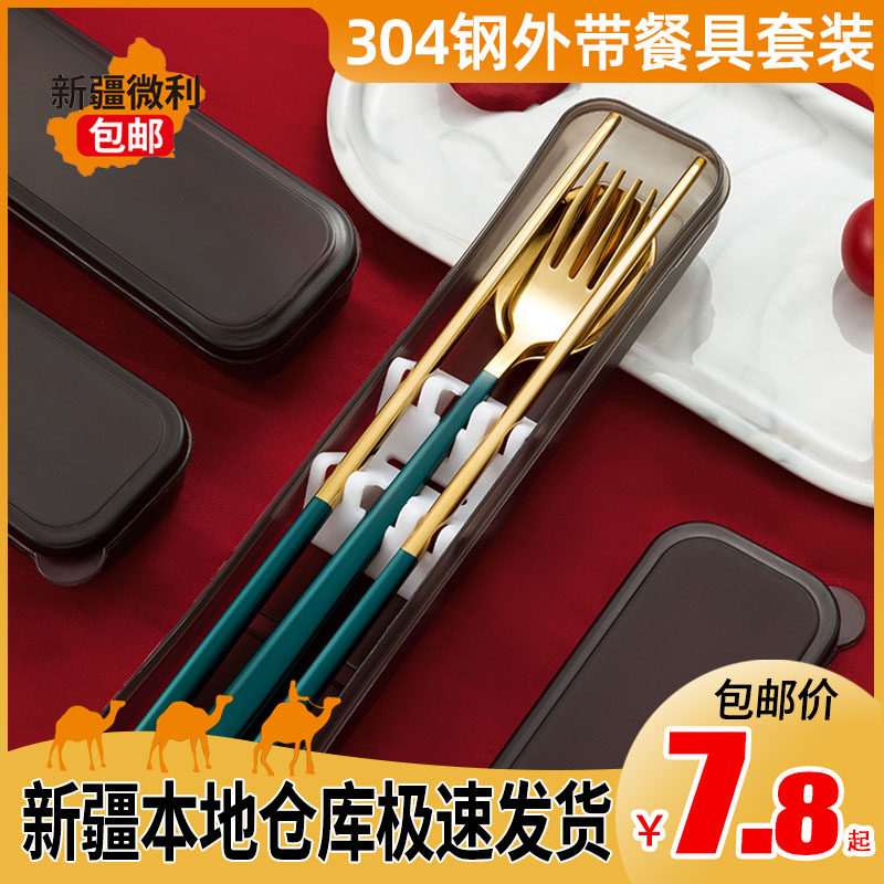 新疆包邮 卡通笑脸镂空大圆勺 筷不锈钢餐具 餐具两件套装礼品热门设计联盟服务商