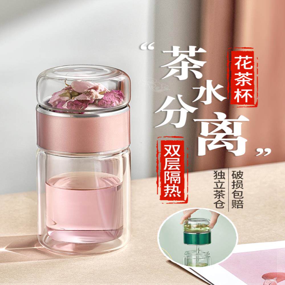 网红款水杯女夏季玻璃杯高档便携办公室泡茶杯茶水分离杯子高级感热门设计联盟服务商