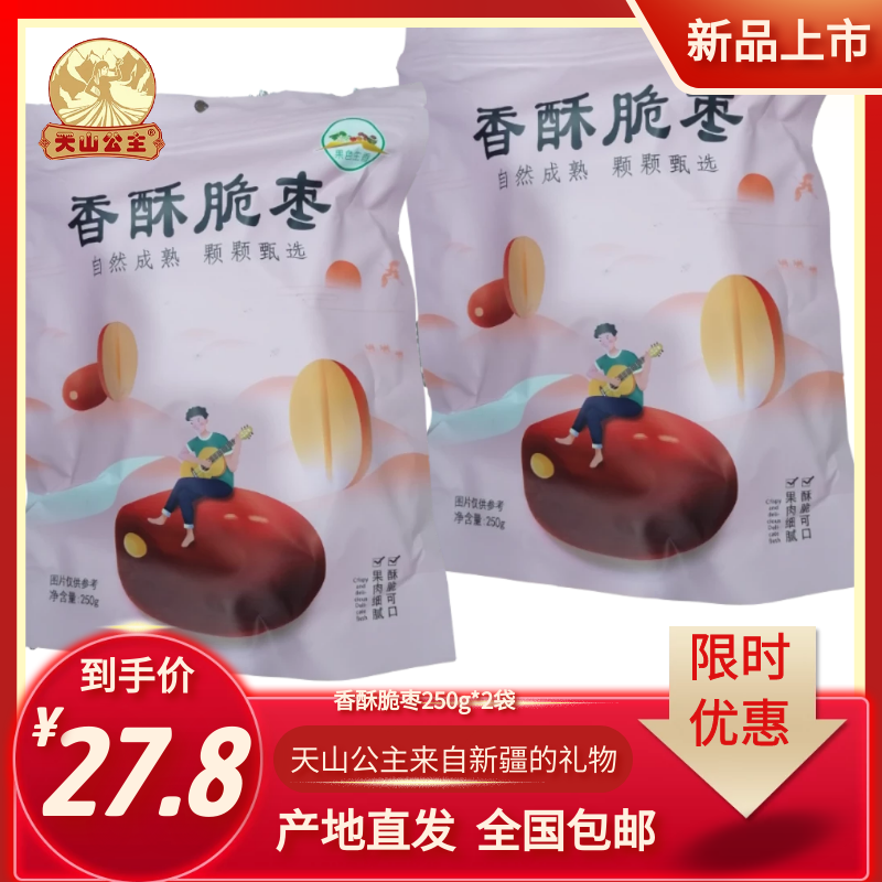 天山公主新疆特产香酥脆枣250g2袋产品包邮灰枣休闲零食方便即食热门设计联盟服务商